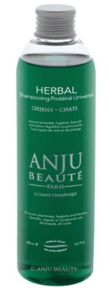 Shampoing Herbal Anju de Marque Premium pour chiens et chats. Formule cosmétique pour une hygiène corporelle efficace. Maintient le pelage propre et soigné facilement.
